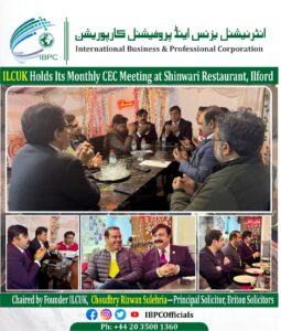 The International Lawyers Club UK (ILCUK) held its monthly CEC Members Meeting at Shinwari Restaurant, Ilford — continuing its mission of fostering collaboration, leadership, and knowledge-sharing within the UK legal community.
