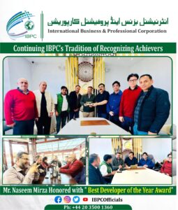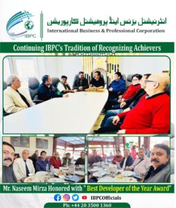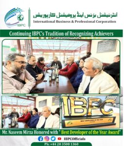 A moment of immense pride for our community as Mr. Naseem Mirza, a visionary developer from Sialkot, is honored with a prestigious award by the International Business & Professional Corporation (IBPC).