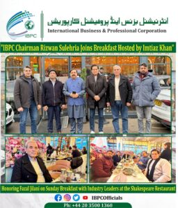The gathering brought together esteemed personalities, including Rizwan Sulehria, Chairman of the International Business & Professional Corporation (IBPC). Mr. Sulehria added significant value to the occasion through engaging business discussions and thought-provoking insights.