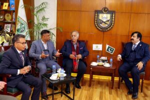 Ahsan Bukhtari, President of the Islamabad Chamber of Commerce & Industry (ICCI), along with other esteemed executives, extended a warm welcome to the International Business & Professional Corporation (IBPC) delegation, led by Chairman Rizwan Sulehria. The meeting focused on fostering collaboration, strengthening trade relationships, and exploring opportunities for joint ventures between ICCI and IBPC
