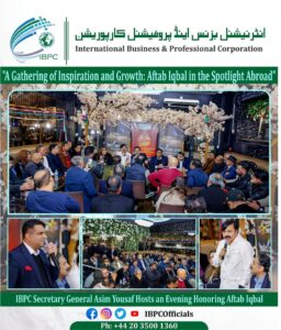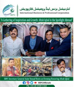 A splendid gathering was organized to honor Aftab Iqbal, one of Pakistan’s most celebrated anchors, as he embarks on exploring new opportunities abroad. This special event was graciously hosted by Moazzam Ali Sandhu and led by Asim Yousaf, Secretary General of International Business & Professional Corporation (IBPC) and CEO of FMC Logistics.