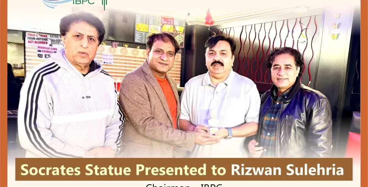 Chairman of the International Business & Professional Corporation (IBPC) and Chairman of the International Lawyers Club UK (ILCUK), Barrister Rizwan Sulehria, was honoured to receive a beautifully crafted Socrates statue as a thoughtful gift from Mian Younas, officially marked with