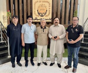 Today, I had the honor of meeting with distinguished colleagues, including former Vice President of the Chamber and renowned analyst Ayoub Khank, Chief Editor of Day Time Sialkot Irfan Latif Mir, Arfan Khan, Muhammad Ejaz Ghauree, and Azeem Dar.