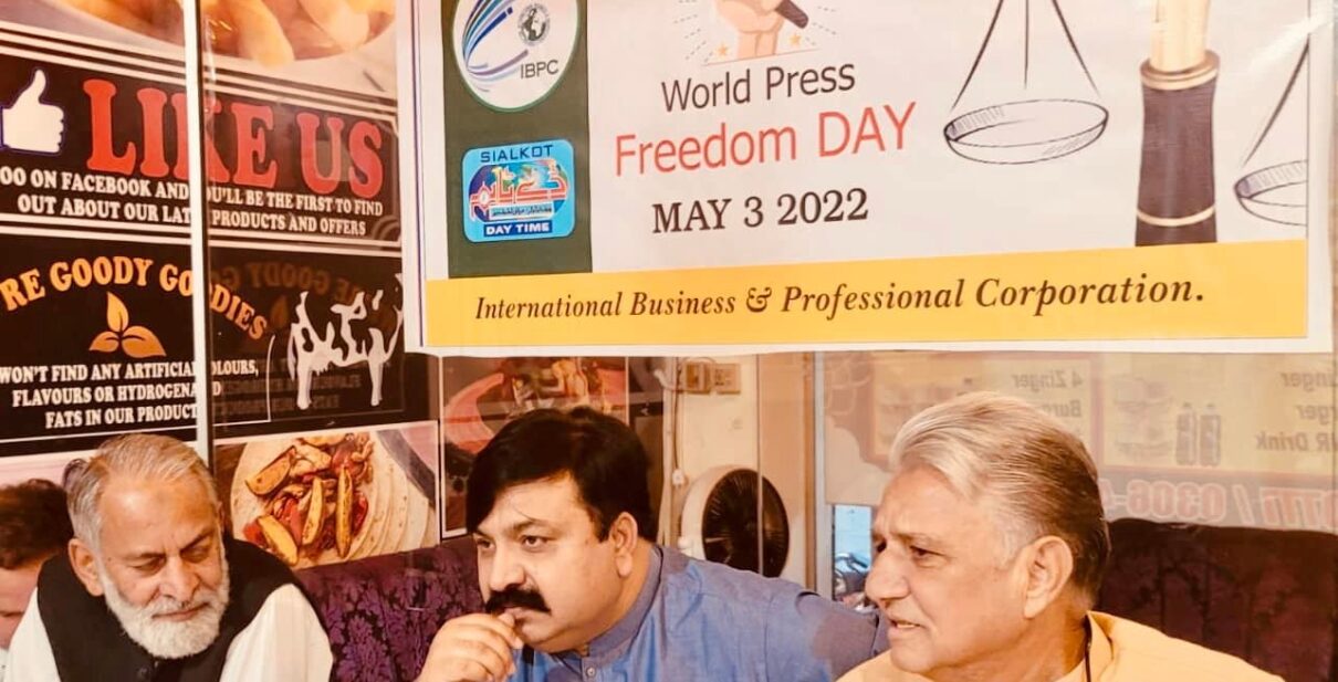 International Business & Professional Corporation organized a grand event at Brit’s Pizzeria & Cafe in Sialkot on the occasion of World Press Freedom Day. In which eminent journalists of Sialkot participated. On this occasion, discussions were held regarding mutual cooperation and solutions to the problems faced by freedom of press. Prayers were offered for the deceased journalists and their families. Cake was also cut at the end of the program.