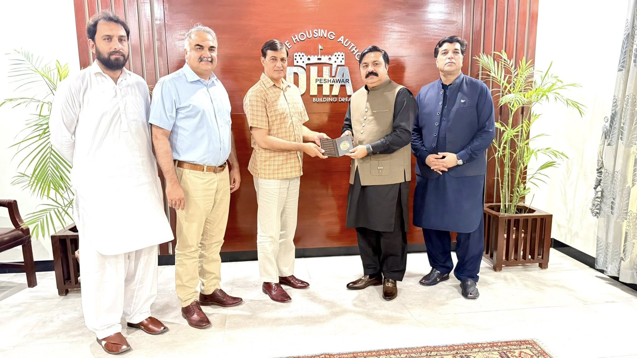 On 22 June 2025, Chairman IBPC Rizwan Sulehria signed an agreement with DHA Peshawar to serve as the international partner for promoting DHA products in the United Kingdom and Europe. The partnership seeks to expand outreach to overseas Pakistanis and institutional stakeholders through structured information sessions, coordinated marketing efforts, and responsible promotion across key markets. Administrator Brigadier Haroon Rahim, Secretary Brigadier (R) Hanif Ullah Khan, Director Marketing Col (R) Imran Fiaz, and Director Planning Akbar Jan presented a souvenir and an award in recognition of this collaboration and shared vision.